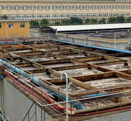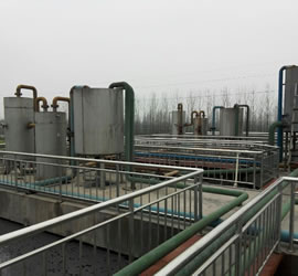 我公司下設(shè)2個(gè)分公司和10個(gè)污水處理項(xiàng)目部,承包處理各類工業(yè)污水40000噸/天,都達(dá)標(biāo)排放。